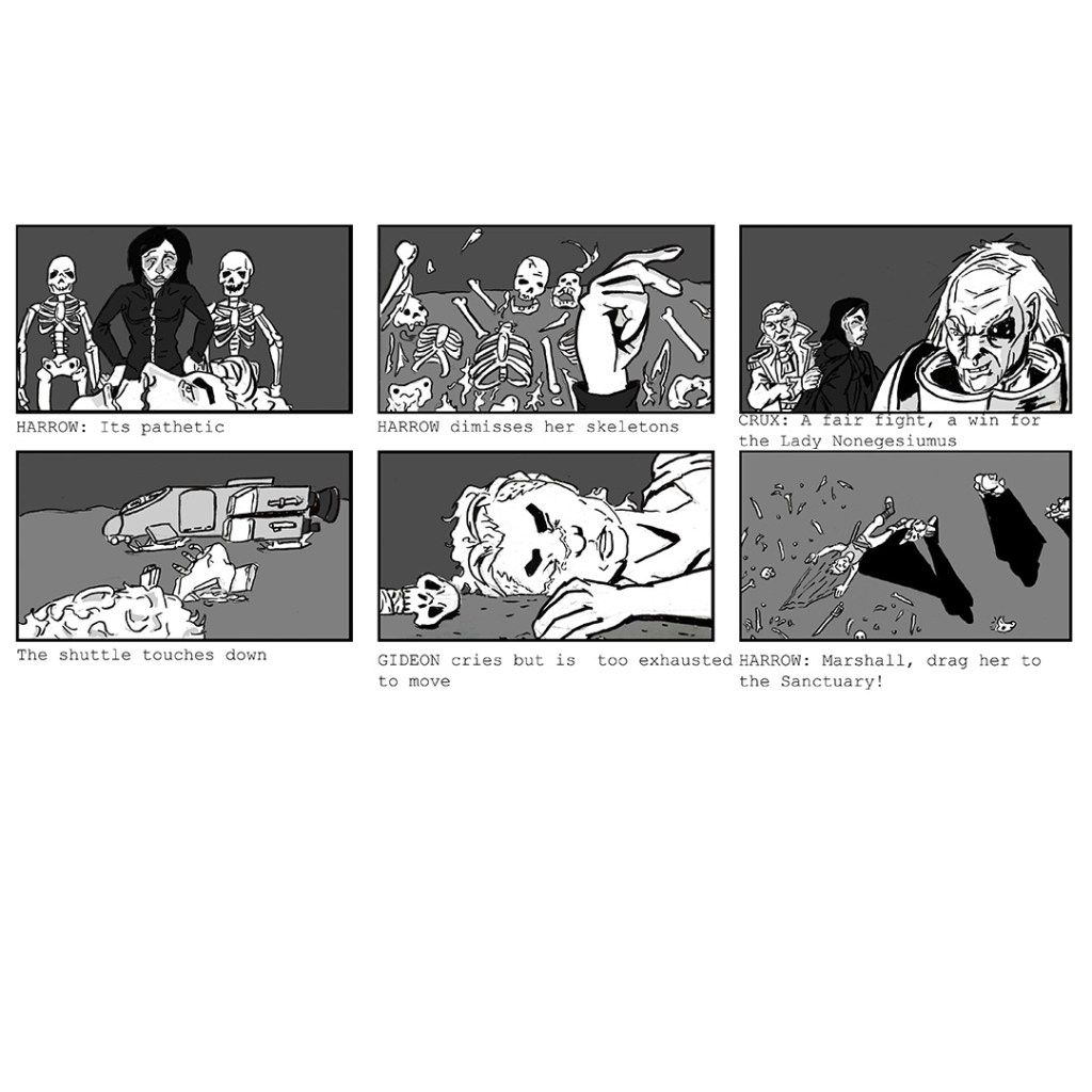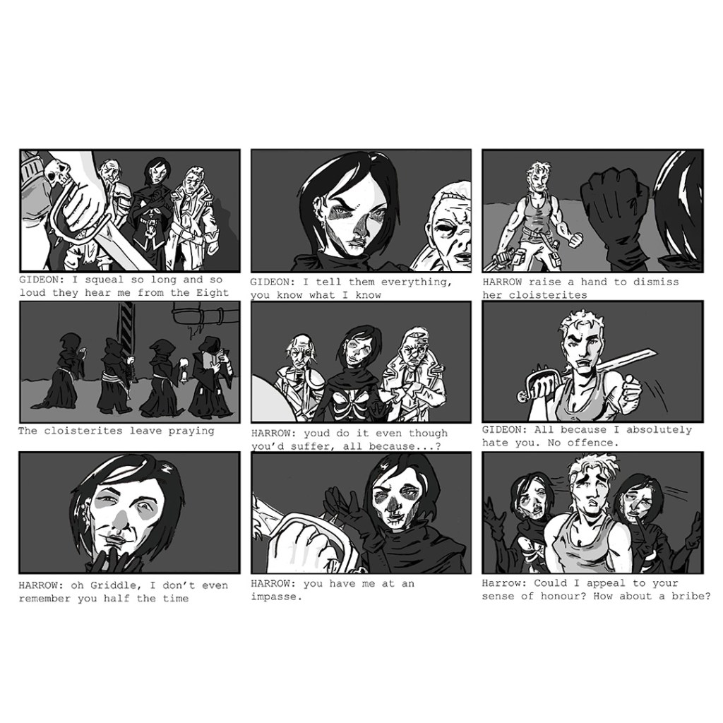 I chose to storyboard out the second chapter of the novel Gideon the Ninth by Tamsin Muir.